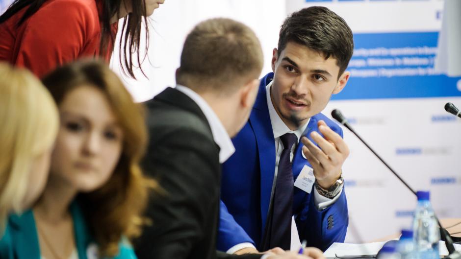 As part of the Model OSCE, students represent different OSCE participating States and institutions in a simulation of the OSCE Permanent Council during a crisis situation, Vadul lui Voda, 5 December 2015.
