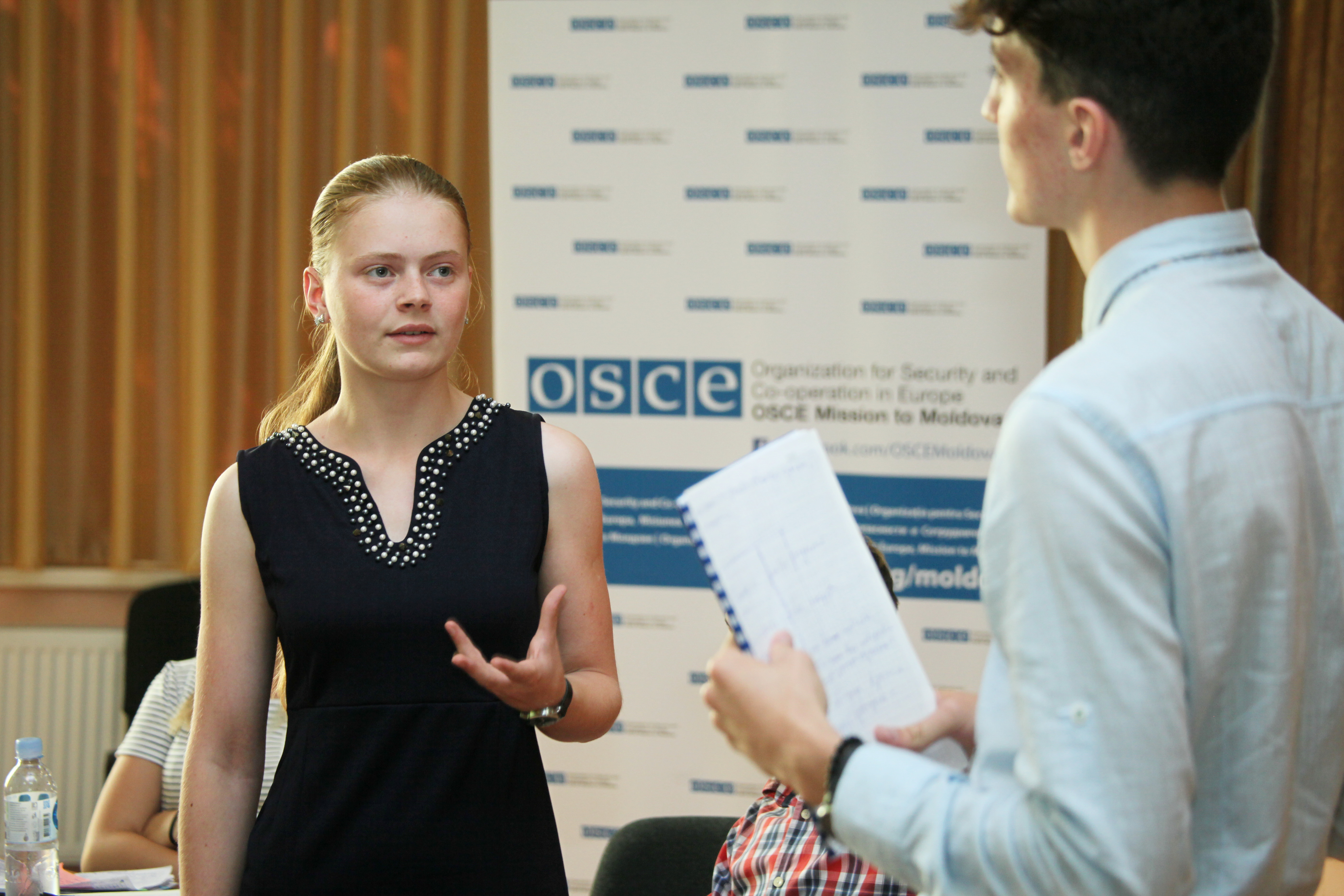 Students from the autonomous region of Gagauzia practicing debate techniques as part of an OSCE-supported project to establish debate clubs in schools across Moldova, Avdarma, 8 September 2016.