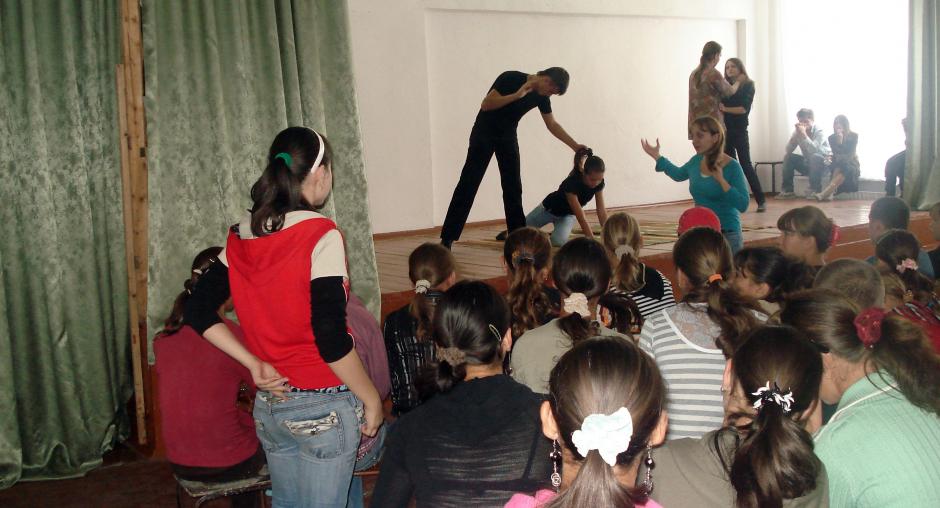 The play, performed by the Association of Young Trainers of Moldova with the support of the OSCE Mission, tells the story of a young Moldovan who leaves home after suffering domestic violence, takes a risky opportunity to work abroad, is exploited and abused but manages finally to escape. The audience has the opportunity to get involved in the story, to ask the characters questions and suggest alternative choices to them.