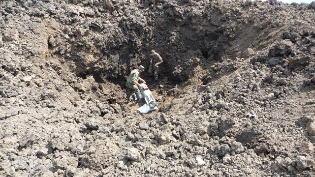 The pits are dug about four meters deep to contain the explosion in the interests of safety.