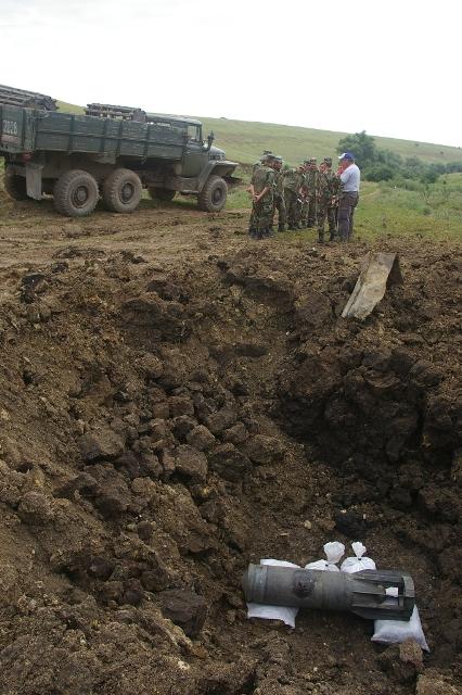 The air bombs are disposed of by using special thermal devices to split the bomb casing and burn off the explosives. Instruction in this destruction method was provided by John Paul Grimsley, an OSCE expert on explosive ordnance disposal.