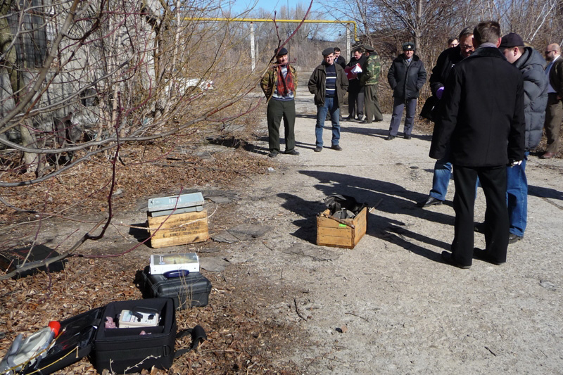 Members of the OSCE Mission to Moldova supervise the removal of radioactive waste from the Sugar and Alcohol Plant in Rybnitsa, 15 March 2012.