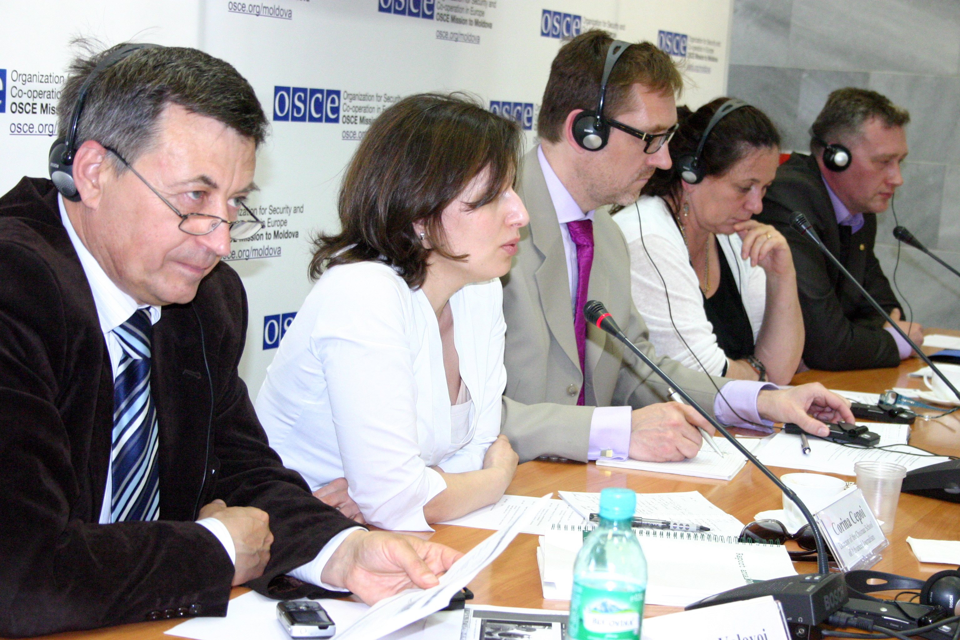 Participants at an OSCE-hosted media donors' roundtable meeting, Chisinau, 26 April 2012.