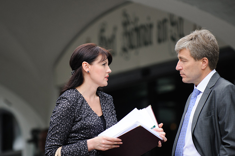 Moldovan and Transdniestrian chief negotiators Eugen Carpov and Nina Shtanski in discussion during a break at an OSCE conference on confidence-building measures in the German town of Rottach-Egern, 20 June 2012.