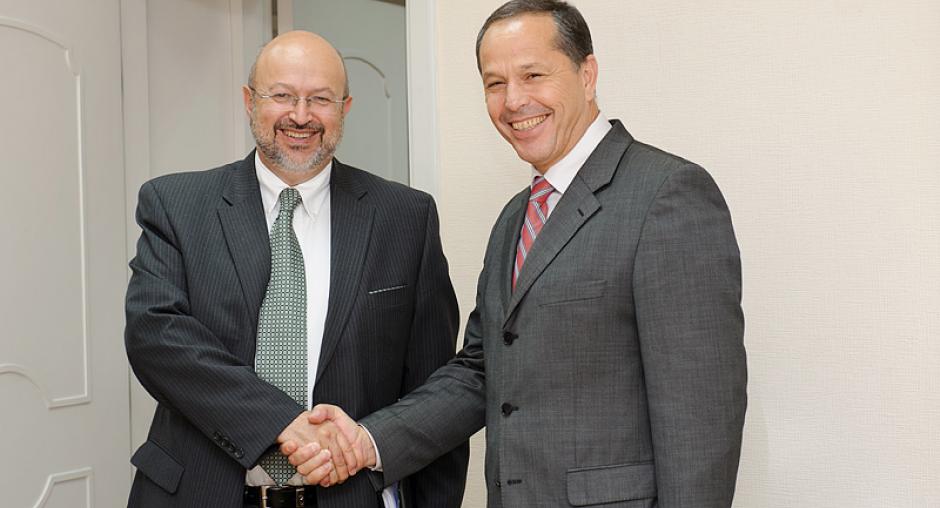 OSCE Secretary General Lamberto Zannier (l) meets the Governor of the Gagauzia autonomous territorial unit of Moldova, Mihail Formuzal, Chisinau, 17 July 2012. (OSCE/Igor Schimbător)