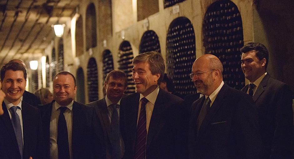 OSCE Secretary General Lamberto Zannier (r) accompanied by Moldovan Deputy Prime Minister for Reintegration and Chief Negotiator (center) at the Milestii Mici winery, world's biggest wine cellars, 17 July 2012, Chisinau. (OSCE/Igor Schimbător)