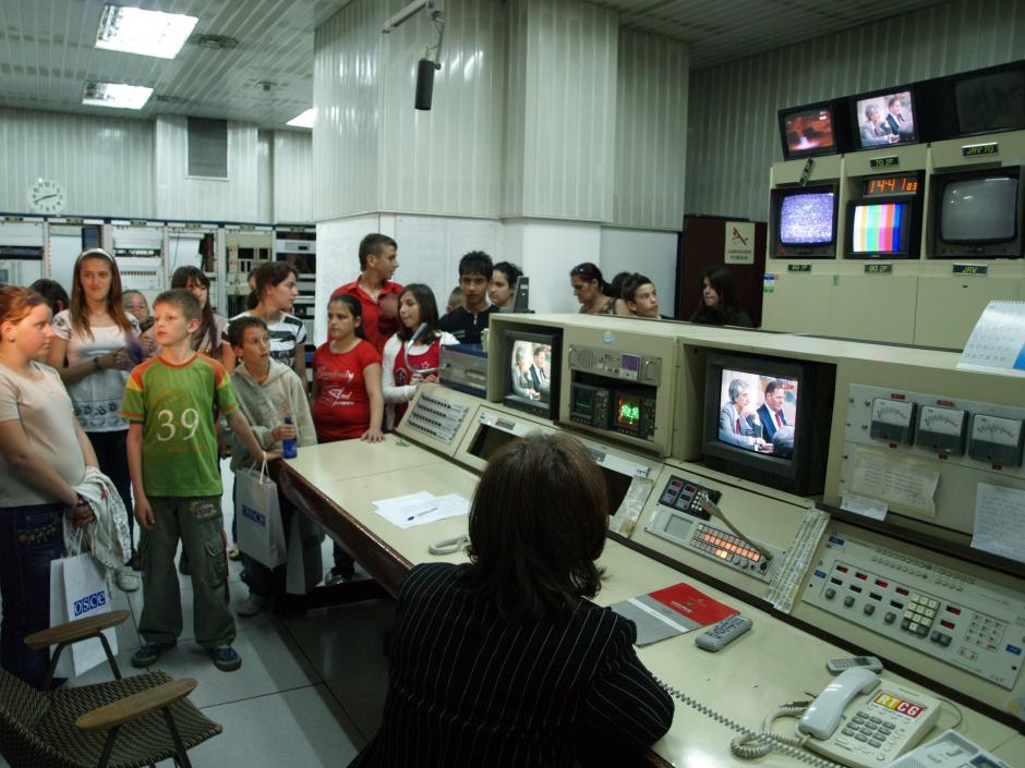 Young members of the journalism club at Marshal Tito school in Ulcinj, Montenegro, visit the studio control room of Public Service Broadcasting in Podgorica, 6 May 2009.