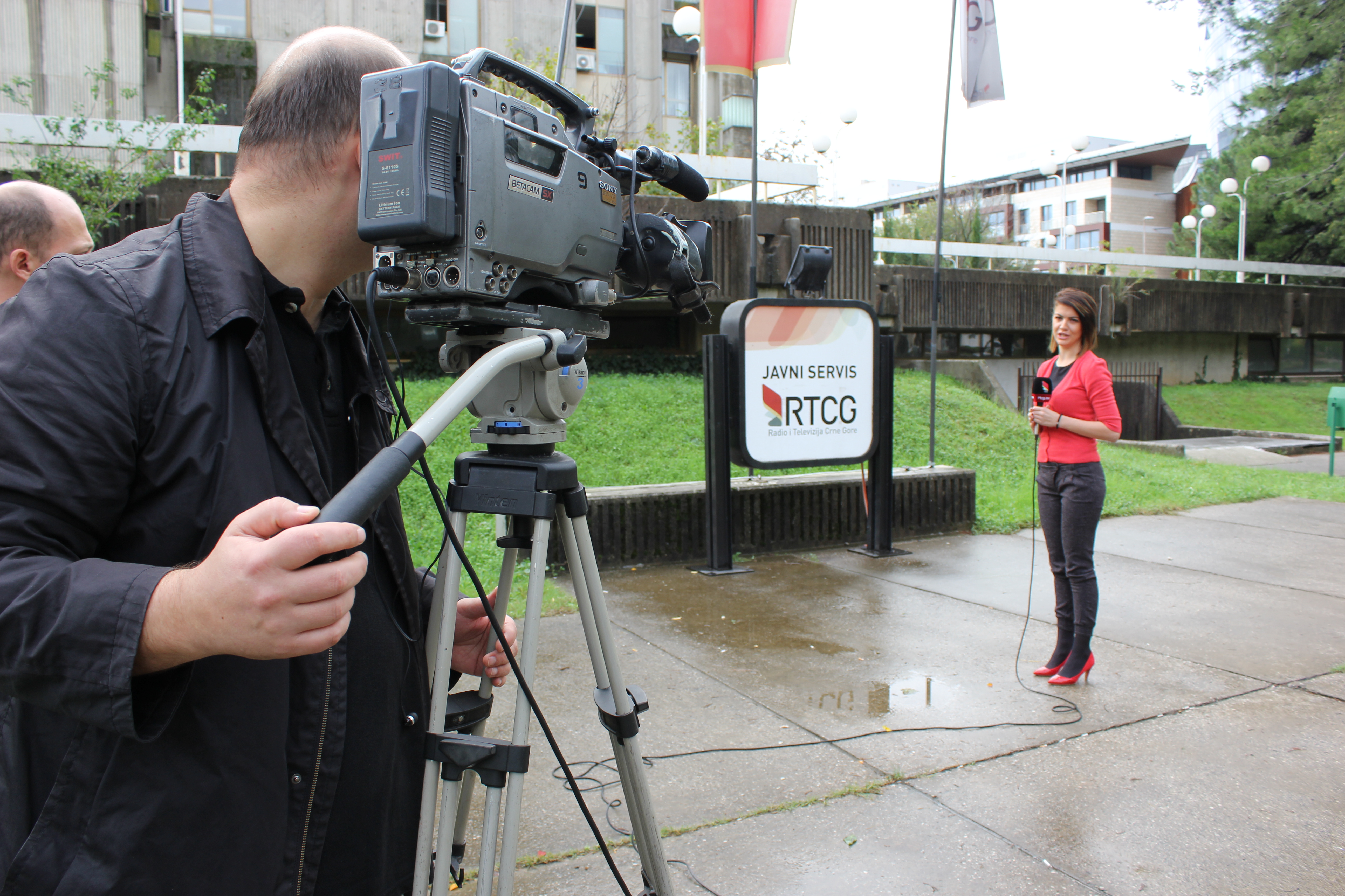 Practising stand-up techniques with news reporters from public service broadcaster Radio-Television of Montenegro, during an OSCE-supported nine day professional training course in Podgorica, 6 November 2013.