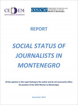 The Centre for Democracy and Human Rights NGO in co-operation with the OSCE Mission to Montenegro conducted this research for the period from September through November 2014 with two main goals: measuring a social status of journalists and journalists’ views on journalism as a profession.