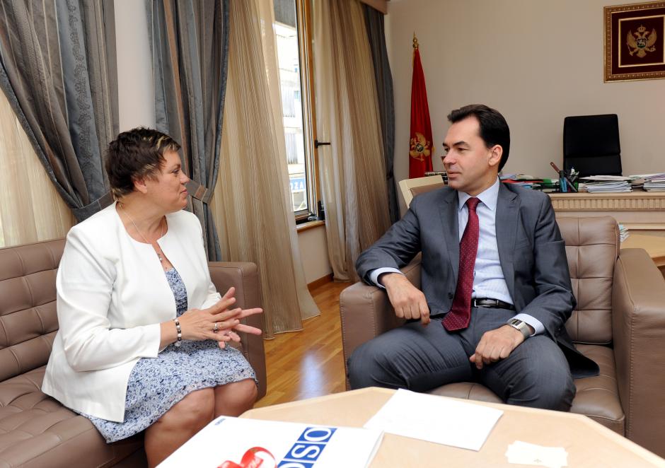 Head of OSCE Mission to Montenegro, Ambassador Janina Hrebickova (l) met with Montenegrin Justice Minister Zoran Pazin, Podgorica, 22 June 2015.