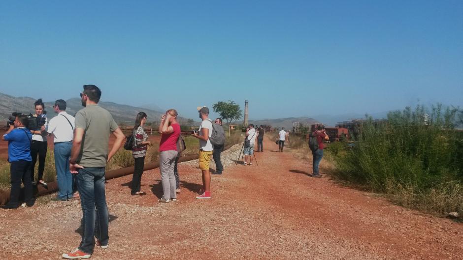Montenegrin and Albanian journalists at the environmental challenges training at the Aluminum Plant in Podgorica, 18 September 2015.