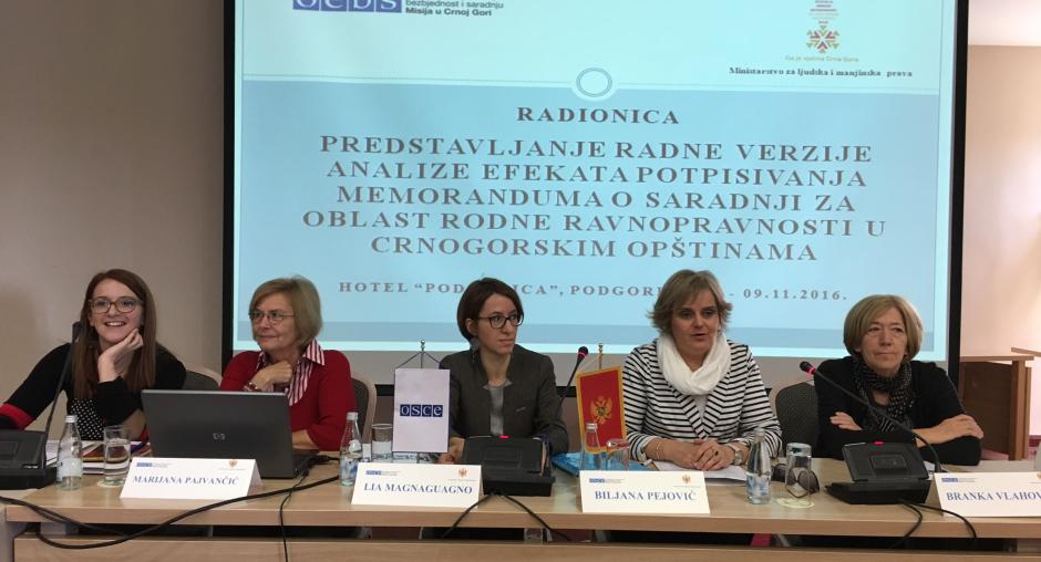OSCE Mission to Montenegro organized a workshop for municipal gender focal points in Montenegro on 8 and 9 December 2016 in Podgorica. The event provided an opportunity for representatives of municipalities, civil sector and the Ministry for Human and Minority Rights to meet and discuss the draft of the analysis on gender mainstreaming at the local level.