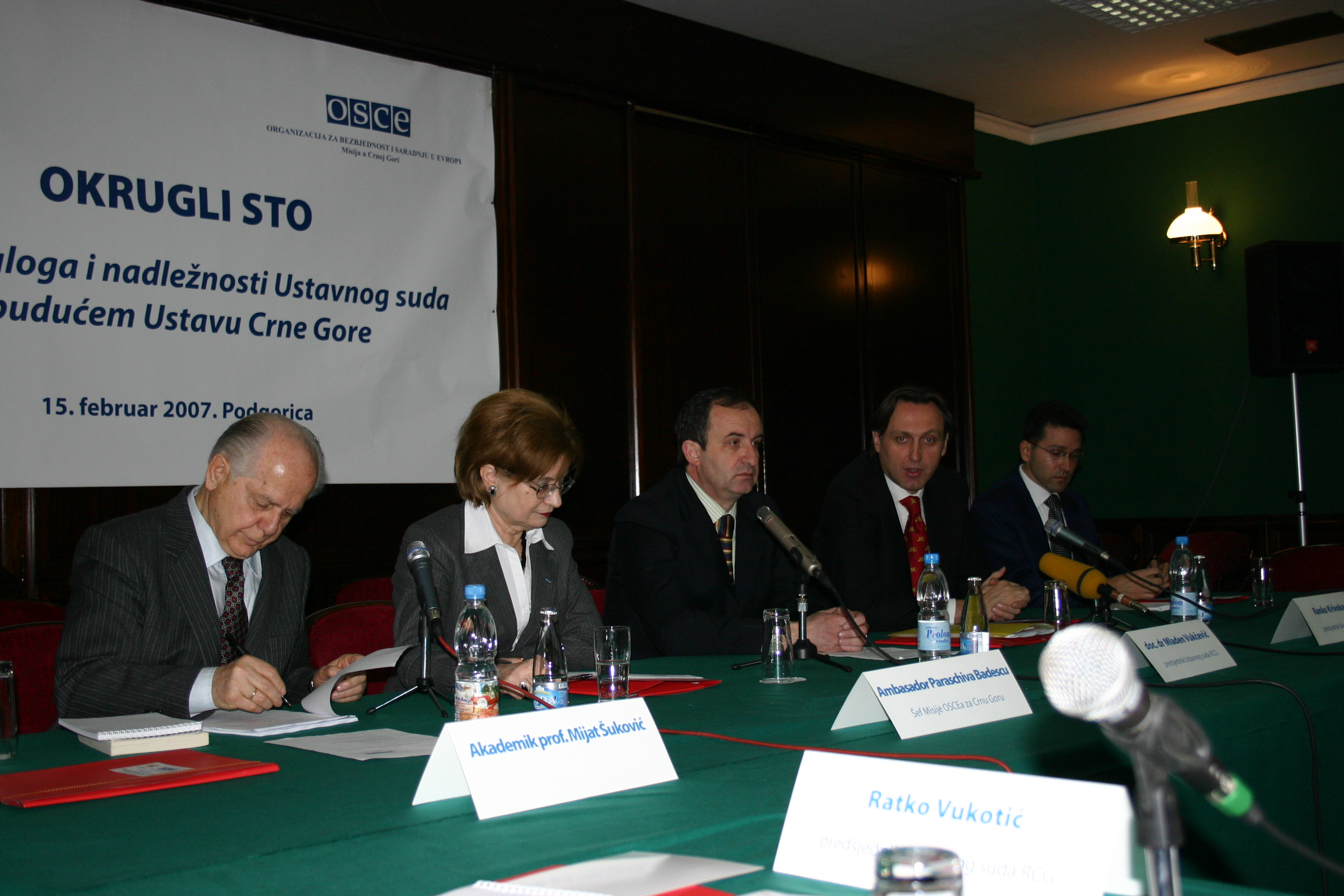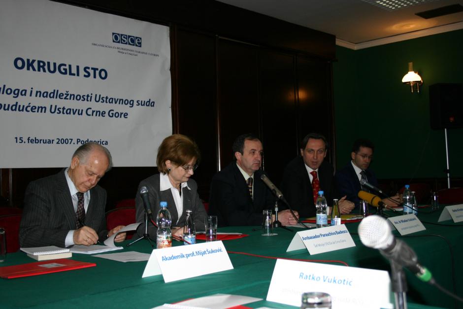 The Head of OSCE Mission to Montenegro, Ambassador Paraschiva Badescu (second left), at a roundtable on the country's new Constitution, Podgorica, 15 February 2007.