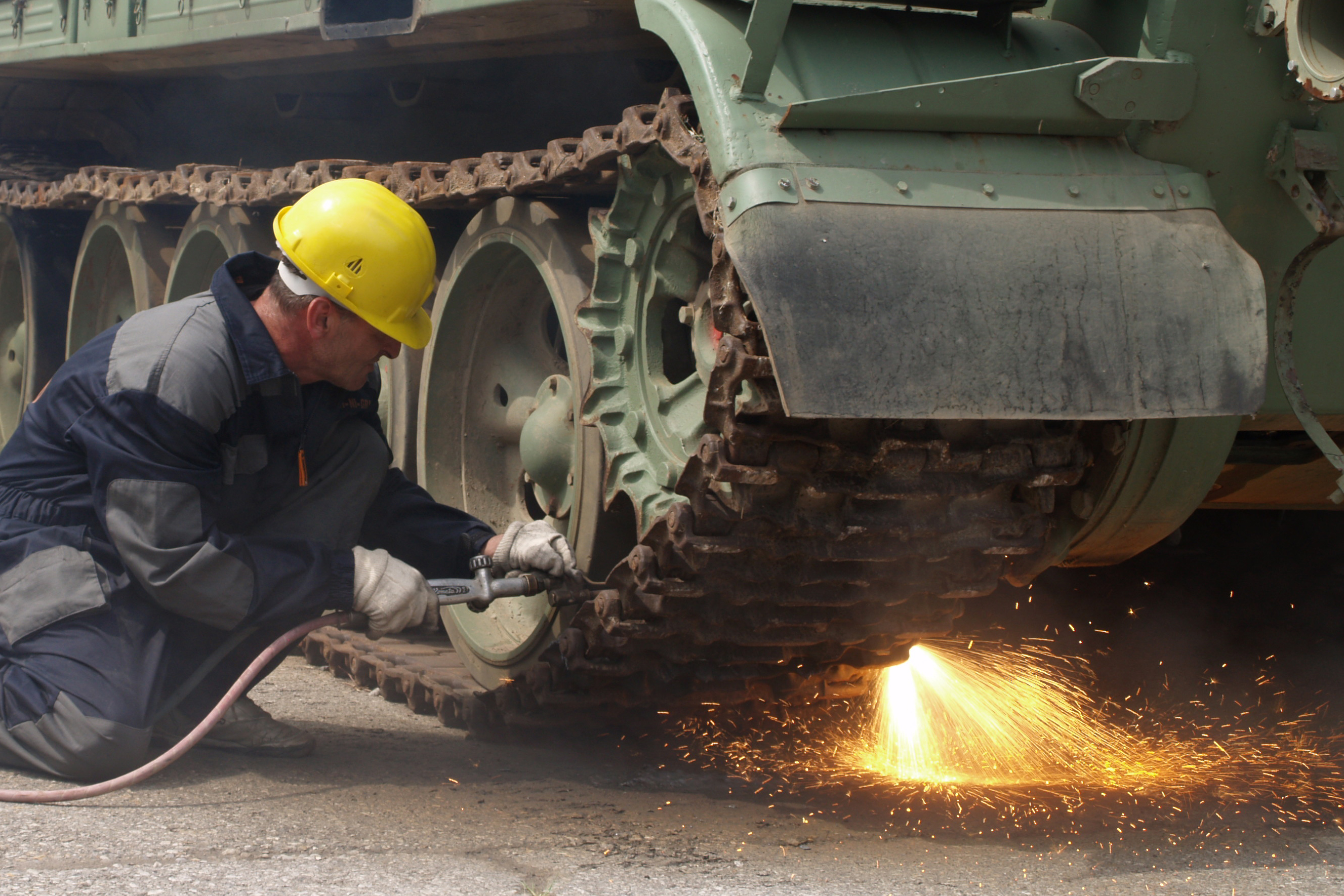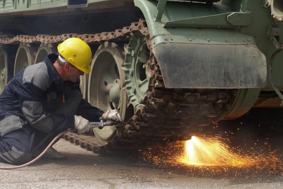The first of 61 surplus tanks is cut up to mark the start of the Montenegro Demilitarization Programme, a joint project between the country's Ministry of Defence, the OSCE and the UNDP, Podgorica, 3 July 2007.