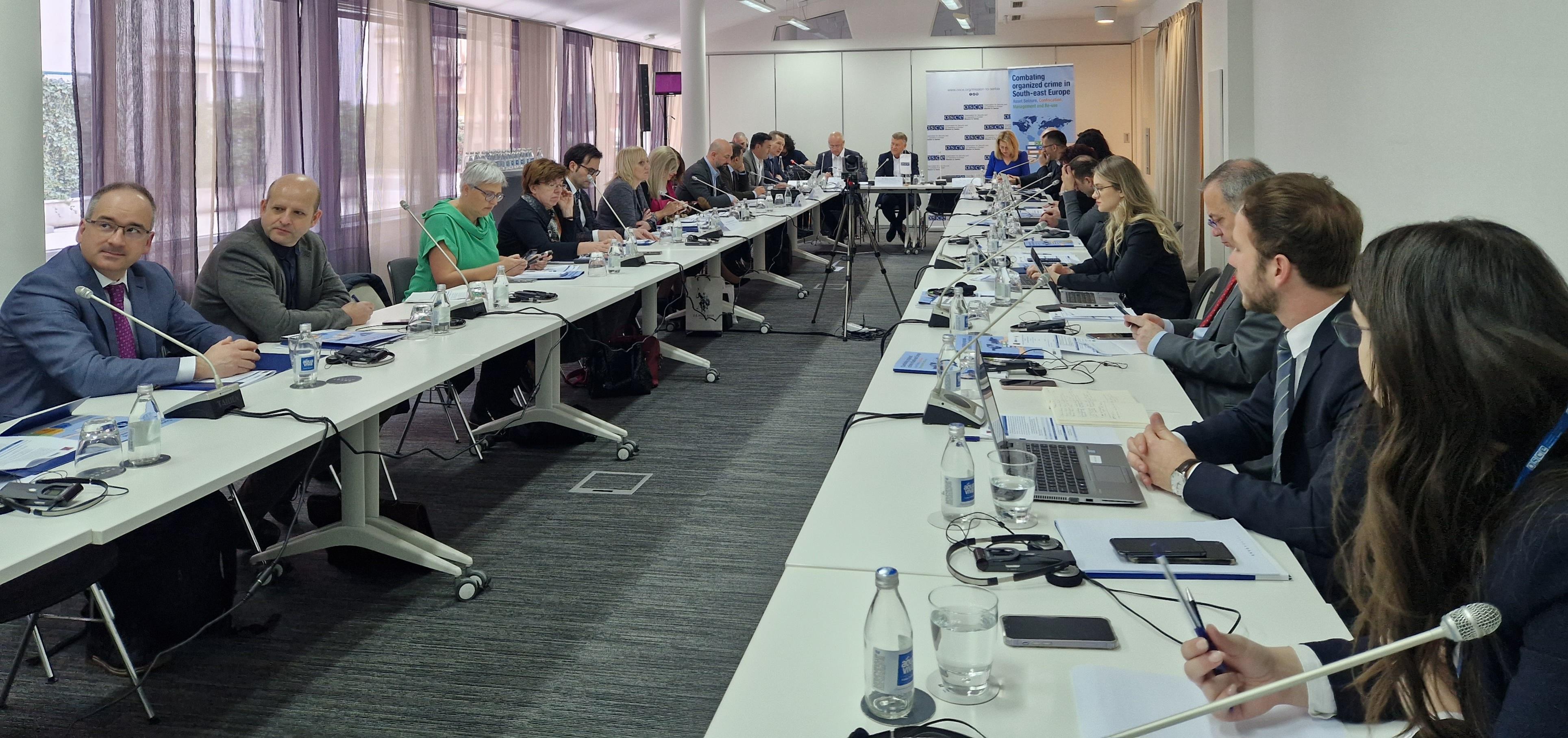 Participants at the ninth ninth annual meeting of the permanent conference of organized crime prosecutors held on 22 and 23 February in Belgrade, Serbia.