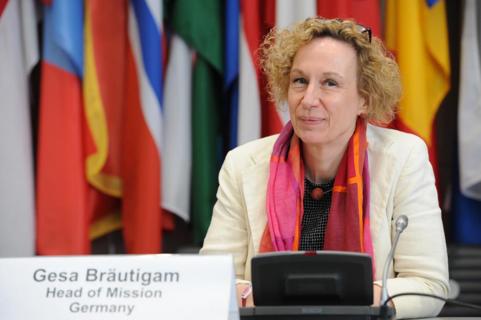 Ambassador Gesa Bräutigam, Head of Permanent Mission of Germany to the OSCE, at the launch of the E-MINDFUL Project, 15 June, Vienna.