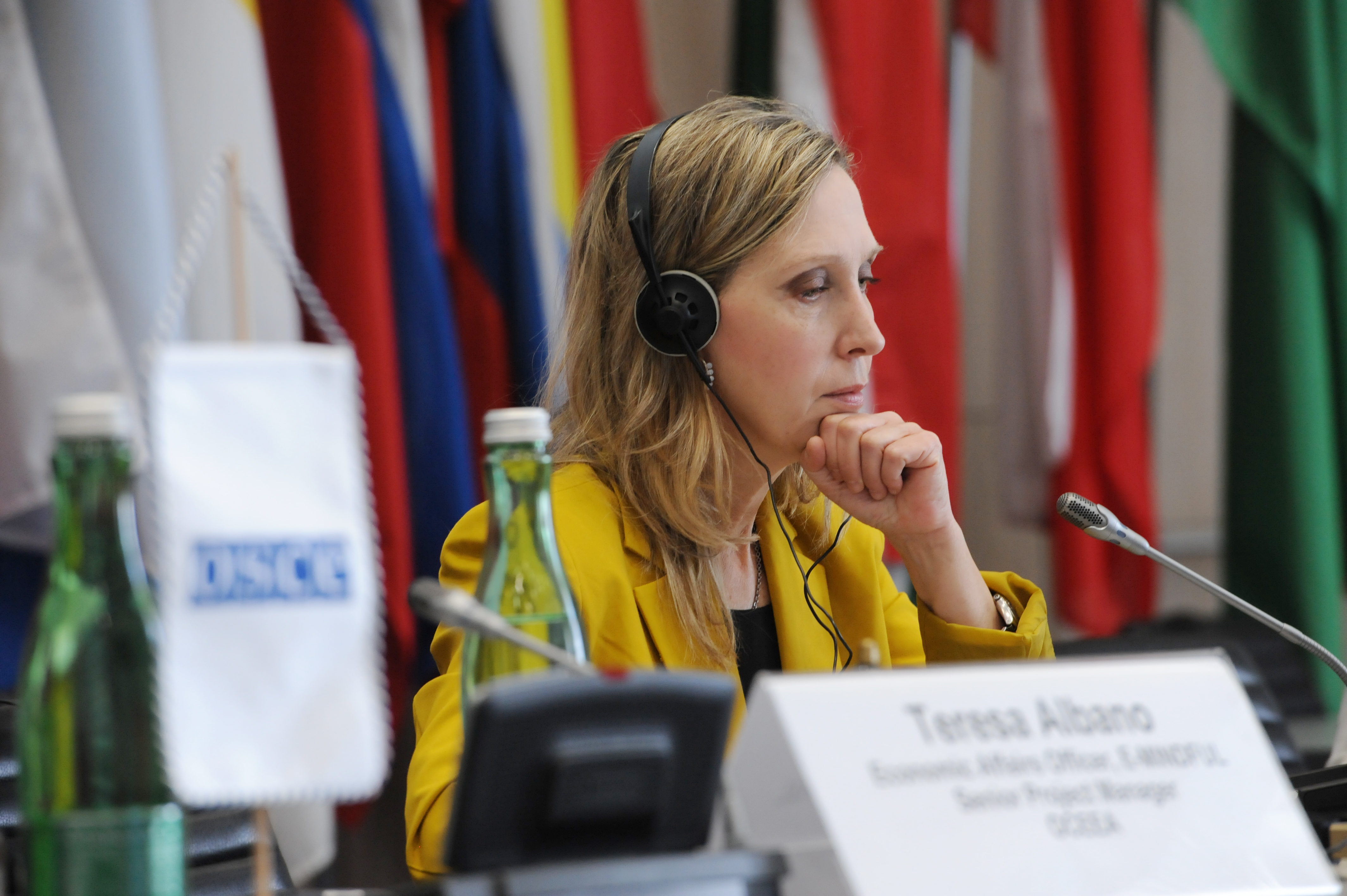 Teresa Albano, the E-MINDFUL Project Manager/OSCE Economic Affairs Officer, at the launch of the E-MINDFUL Project, 15 June, Vienna.
