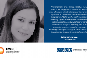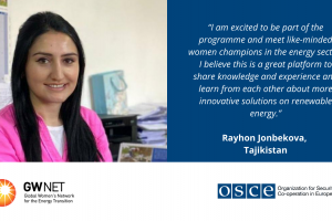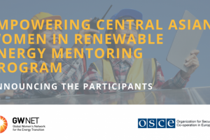 To empower women as agents of change in the energy transition, the Organization for Security and Co-operation in Europe (OSCE) has launched a mentoring programme for women professionals working in energy in Central Asia. Part of the OSCE extra-budgetary project on Promoting women’s economic empowerment in the energy sector for energy security and sustainability in Central Asia, this programme is implemented in partnership with the Global Women’s Network for the Energy Transition (GWNET).