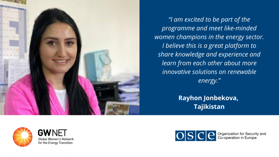 Rayhon Jonbekova, Senior Partnerships Officer at Pamir Energy, Tajikistan.