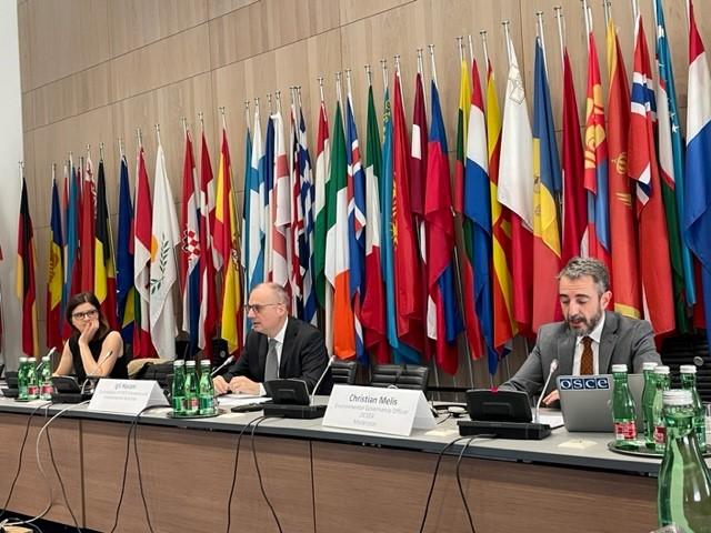 Igli Hasani, Co-ordinator of the OSCE Economic and Environmental Activities, addressing the 2022 Aarhus Centres Annual Meeting, Vienna, 19 October 2022.