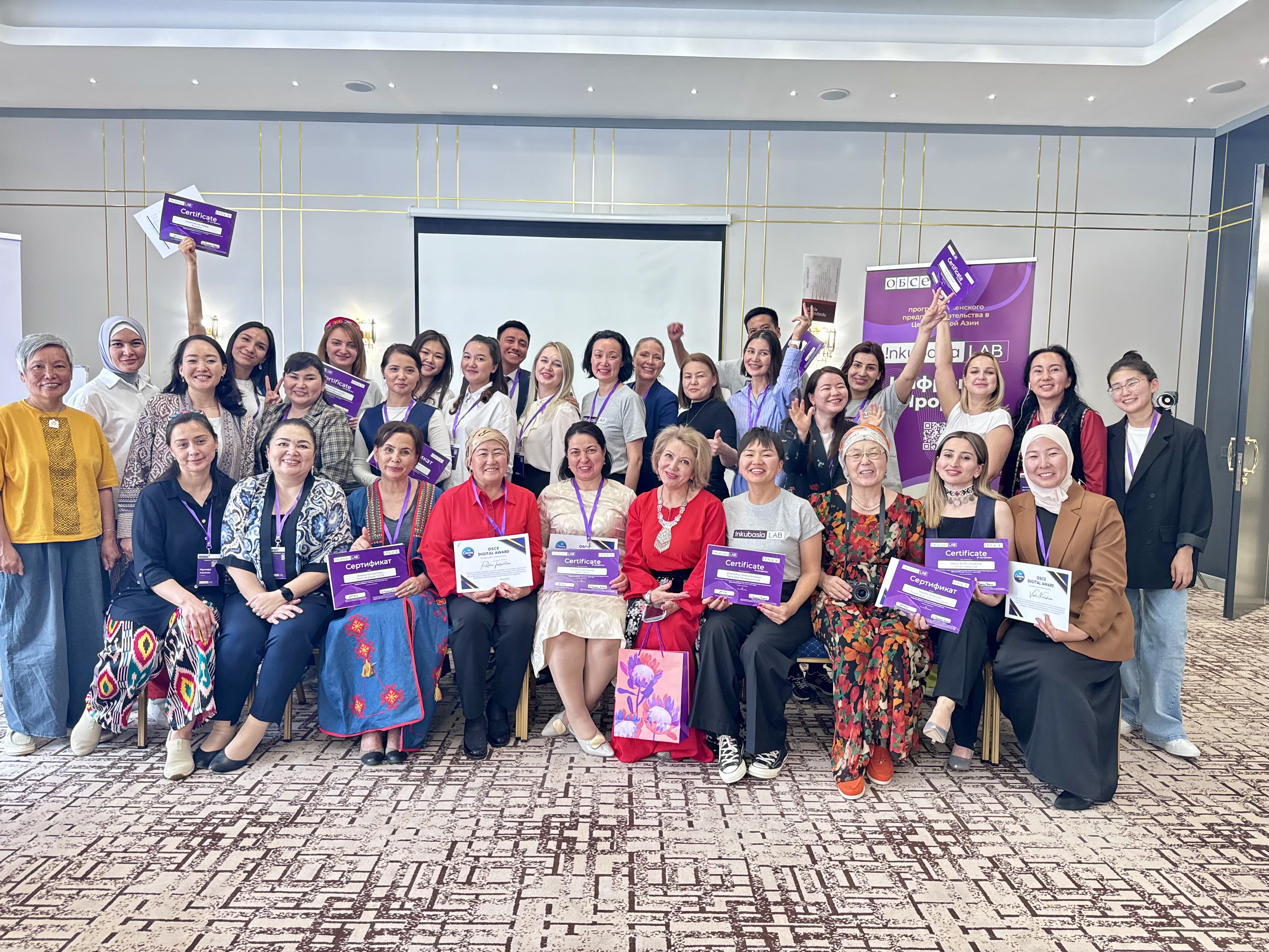 Participants, trainers, mentors and organizers at the closing event in Almaty, Kazakhstan, 18 April 2024.