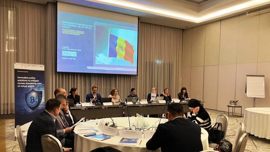 Participants in an OSCE workshop on virtual assets for judges and prosecutors in Chisinau, Moldova, 24 March 2025.