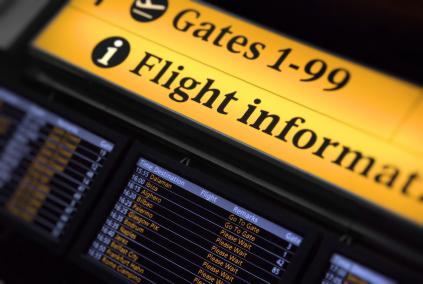 A departures sign at an airport.