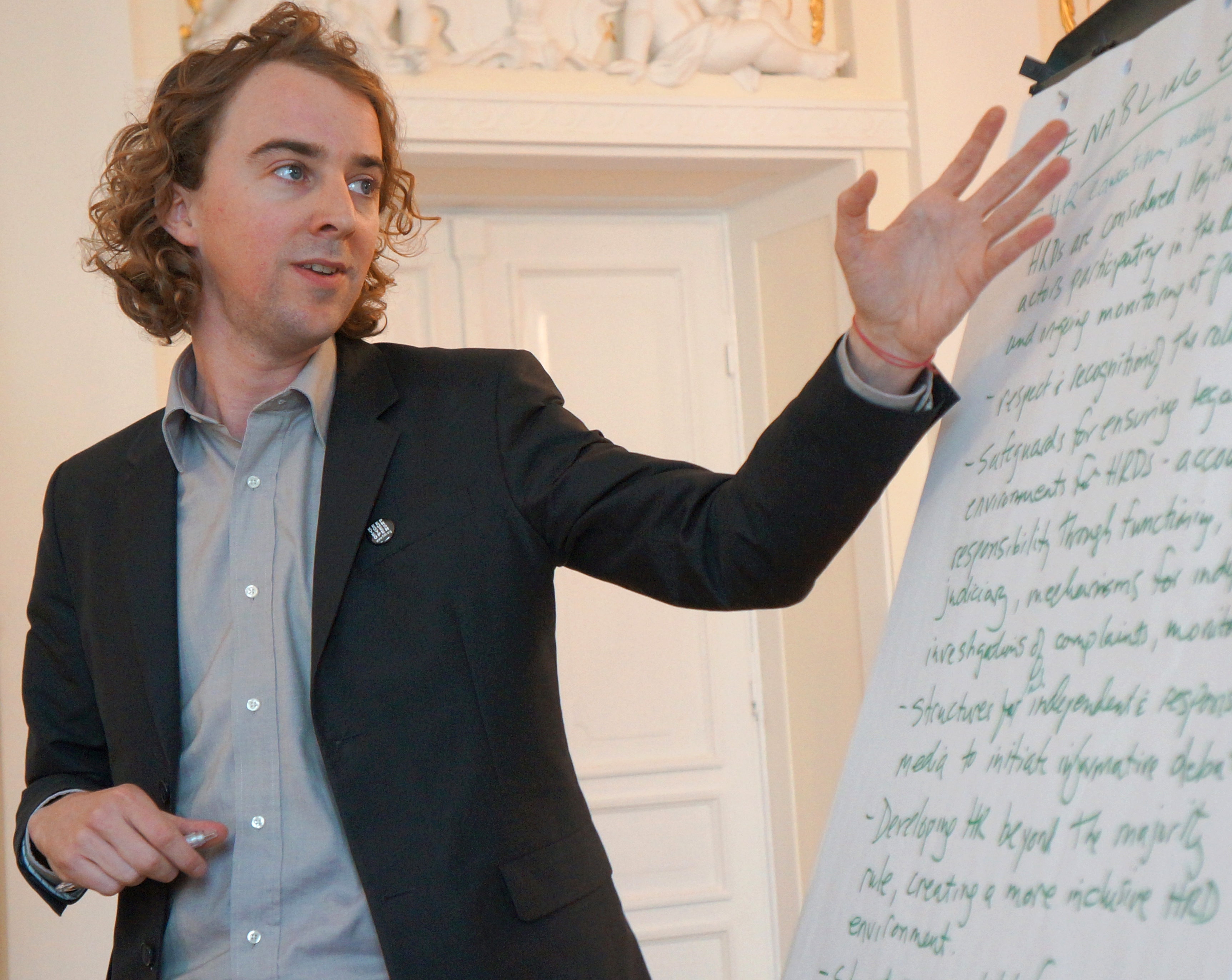 Antoine Madelin of the International Federation for Human Rights (FIDH) addresses participants of a meeting on the effective protection of human rights defenders, Warsaw, 11 June 2013.