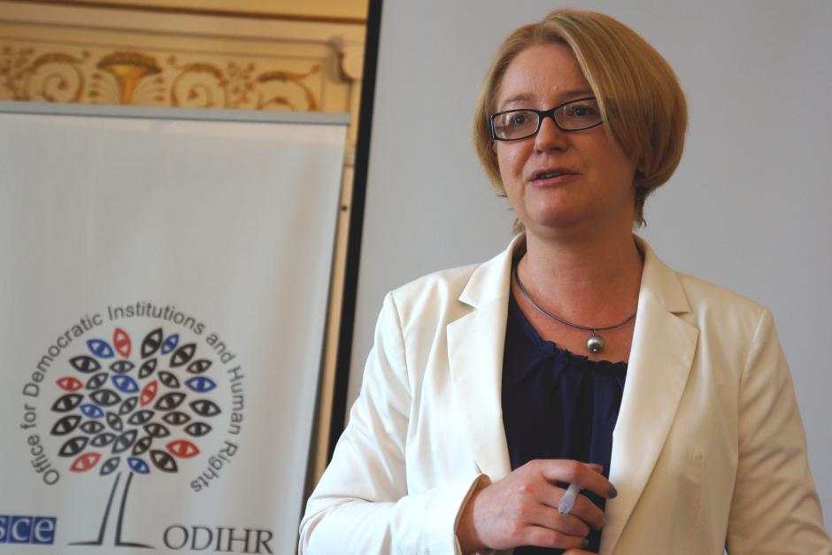Agnieszka Kozłowska-Rajewicz, Poland's Secretary of State and Prime Minister’s Representative for Equal Treatment, addresses participants of a training course for Polish young women leaders on effective political leadership, Warsaw, 12 August 2013.