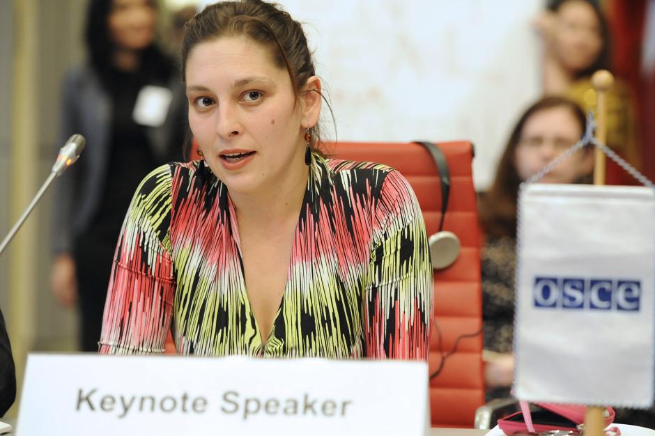 Lívia Járóka, a Member of the European Parliament discusses ways to address the lack of progress in Roma and Sinti inclusion at the Supplementary Human Dimension Meeting in Vienna, 7 November.