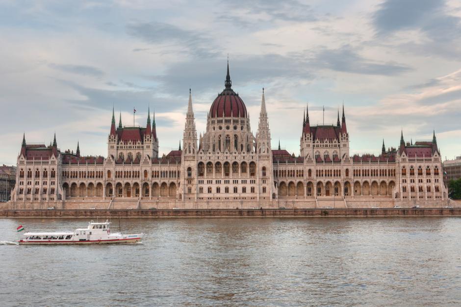 The building of the National Assembly of Hungary, or Országgyűlés, on the banks on the River Danube in Budapest.