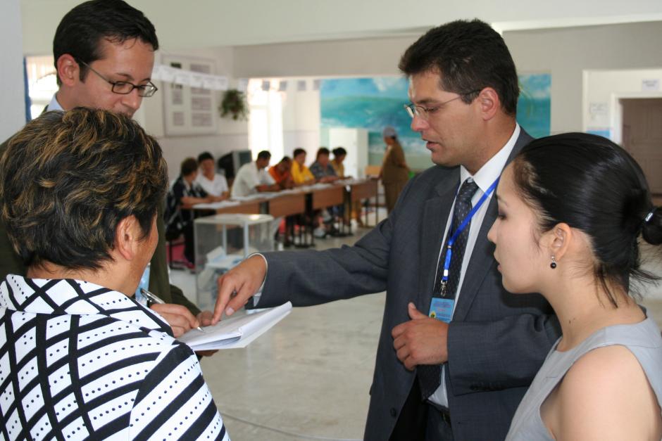 ODIHR Director Janez Lenarcic in a polling station near Bishkek during the Kyrgyz presidential election on 23 July 2009.