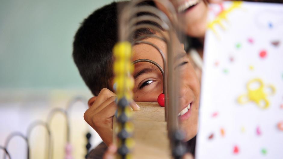 Roma student preparing for the upcoming academic year at the school in Berane, Montenegro, July 2013.