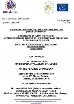 Joint Opinion on the Draft Law on Disciplinary Liability of Judges of the Republic of Moldova