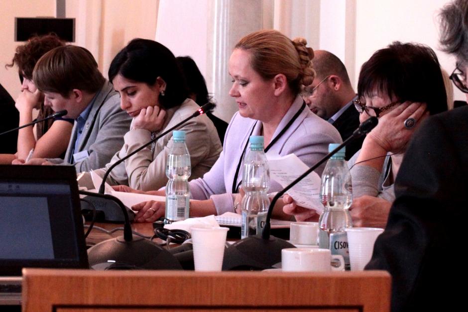 Ms Natalia Bourjaily, Vice-President – Eurasia for the International Centre for Not-for-Profit Law and Member of the ODIHR/Venice Comission Expert Working Group on Drafting Guidelines on Freedom of Association, presenting recommendations, Warsaw, 7 May 2014.