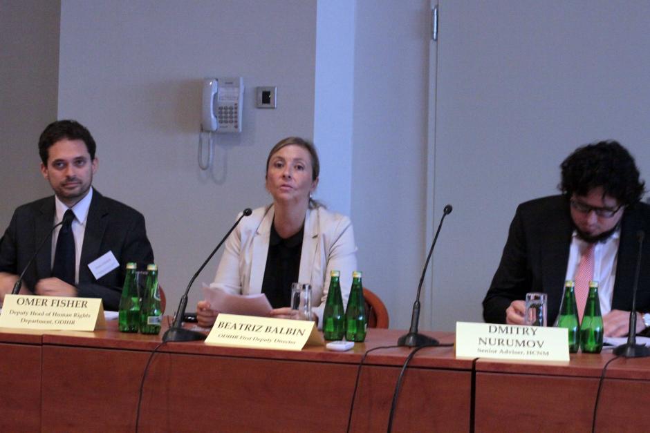 Beatriz Balbin, First Deputy Director of ODIHR, making opening remarks at meeting with civil society organizations from Ukraine, in Warsaw, 18 September 2014