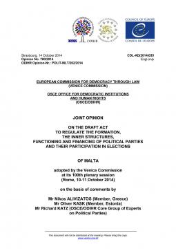 Joint Opinion on the Draft Act to Regulate the Formation, the Inner Structures, Functioning and Financing of Political Parties and Their Participation in Elections of Malta