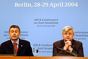 The OSCE's second Conference on anti-Semitism ended on 29 April 2004 with a ringing condemnation of all acts motivated by anti-Semitism or other forms of religious or racial hatred, and participating States agreed to take specific, practical counter-measures. Read more>>