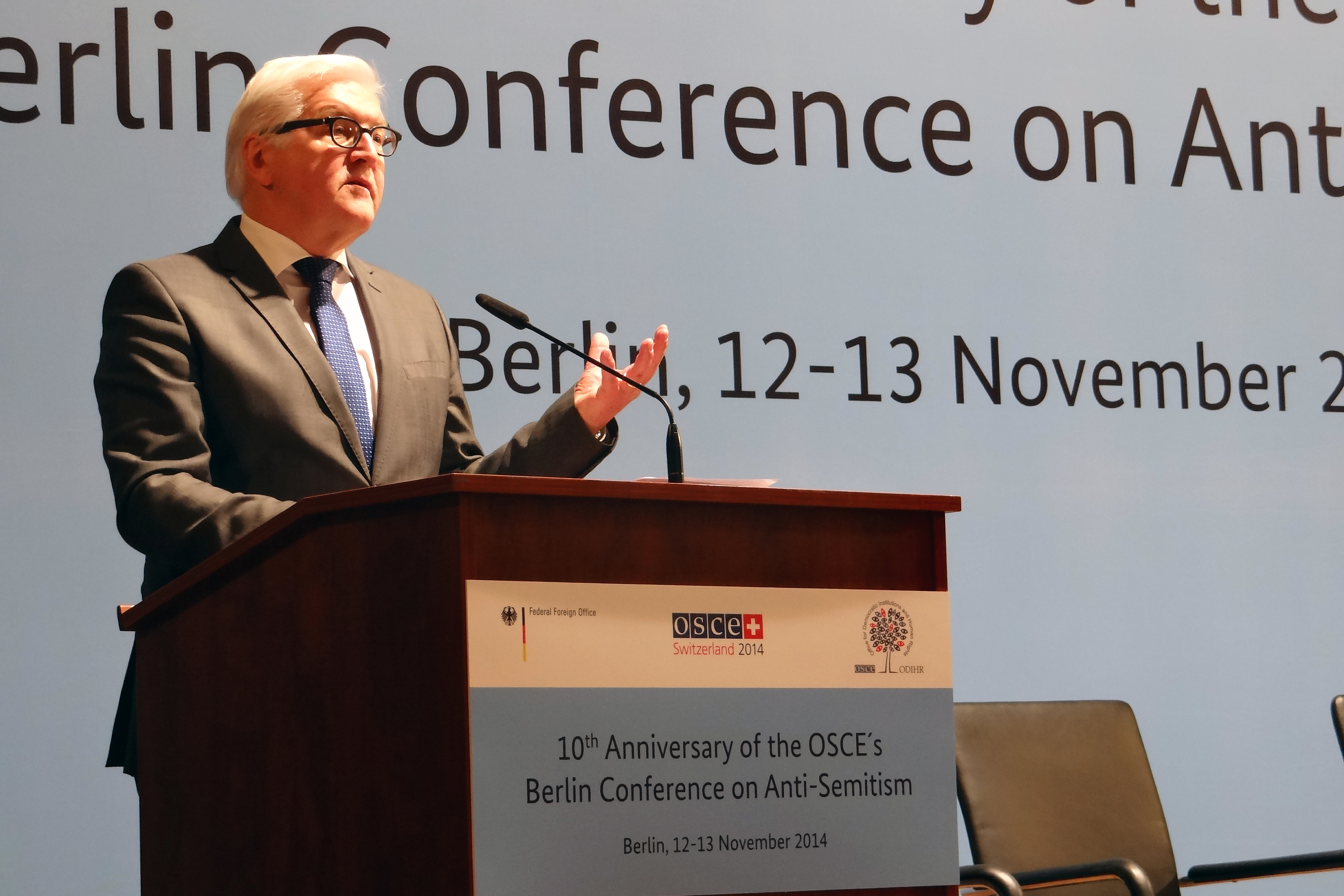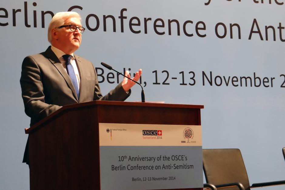 Frank-Walter Steinmeier, Federal Foreign Minister of Germany, speaking in Berlin at the high-level conference to commemorate the OSCE's 2004 Berlin Declaration on anti-Semitism, 13 November 2014.