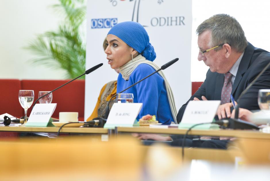 Engy Abdelkader, Member of ODIHR’s Advisory Panel of Experts on Freedom of Religion or Belief presenting the Guidelines on the Legal Personality of Religious or Belief Communities, at event in Brussels, 4 February 2015