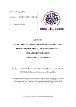 Opinion on the Draft Law on Resolution of Disputes through Mediation and Amendments to Related Legislation of the Kyrgyz Republic