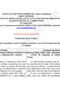 Annex to Draft Joint Opinion on the Draft Amendments to some Legislative Acts concerning Prevention of and Fight against Political Corruption in Ukraine