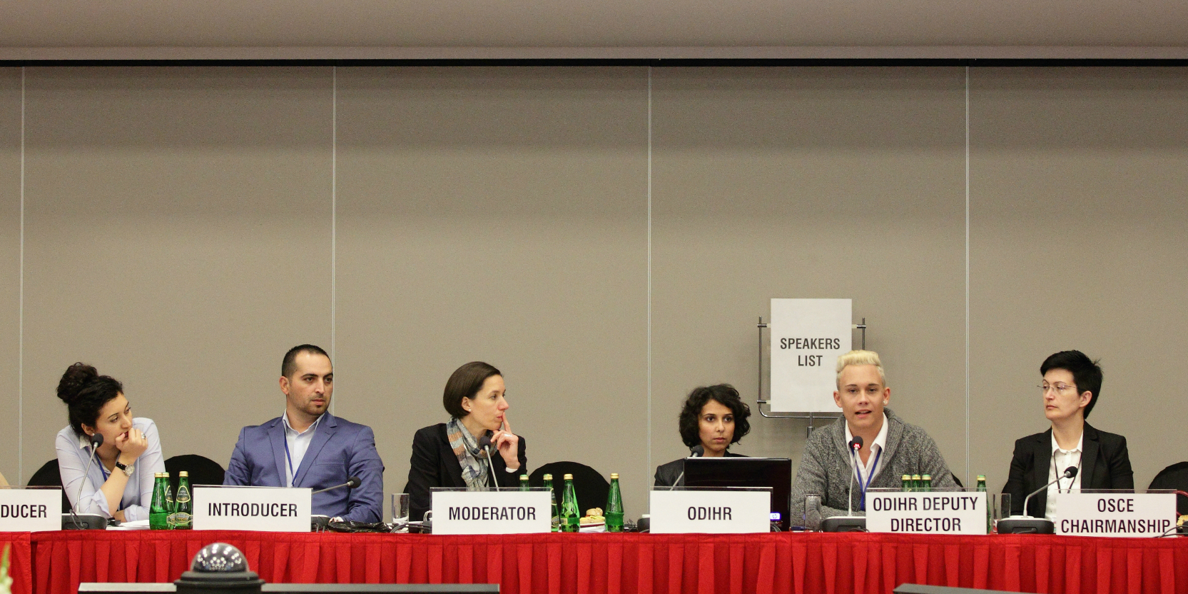 Silas Kropf, Deputy Chairman of Amaro Drom eV (c-r), making his remarks, at Roma youth event during Human Dimension Implementation Meeting in Warsaw, 1 October 2015