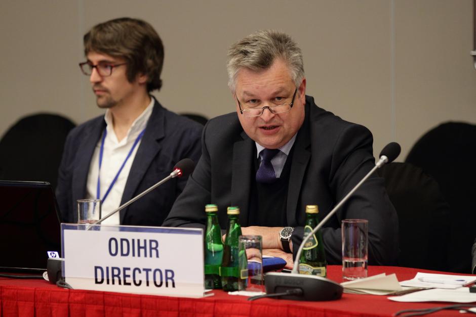 OSCE/ODIHR Director Link, speaking at an event on anti-Roma rhetoric in election campaigns, during Human Dimension Implementation Meeting in Warsaw, 30 September 2015
