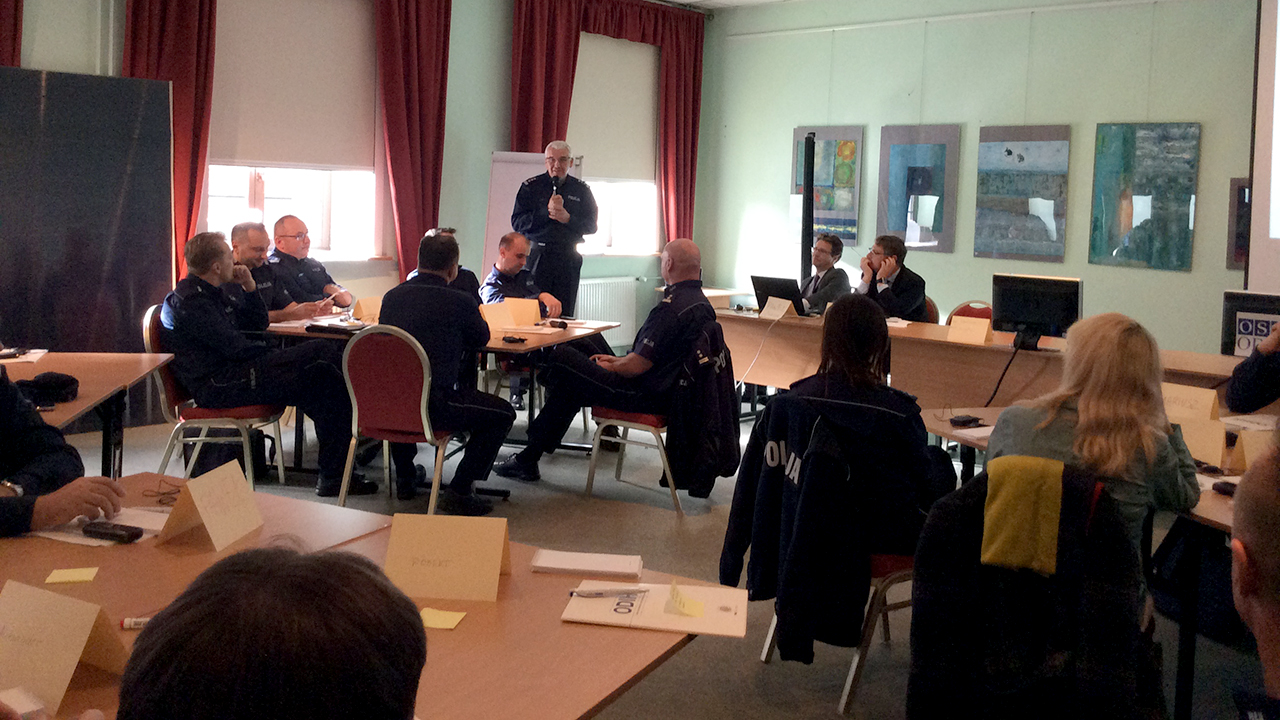 Colonel Krzysztof Lis, Director of Operations and Crisis Management Command and the National Police Headquarters of Poland, speaking at OSCE/ODIHR training on human rights-compliant policing of assemblies in Szczytno, Poland, 28 September 2015