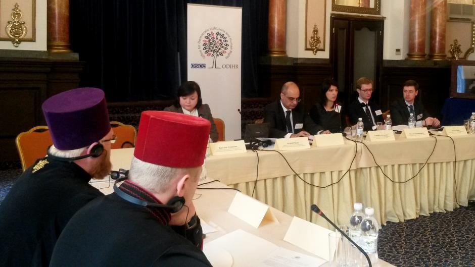 Elizabeth Kitanovic, Executive Secretary for Human Rights of the Conference of European Churches speaking at a roundtable discussion organized by OSCE/ODIHR on the role of dialogue in the security of religious and belief communities, in Odessa, 3 November 2015.