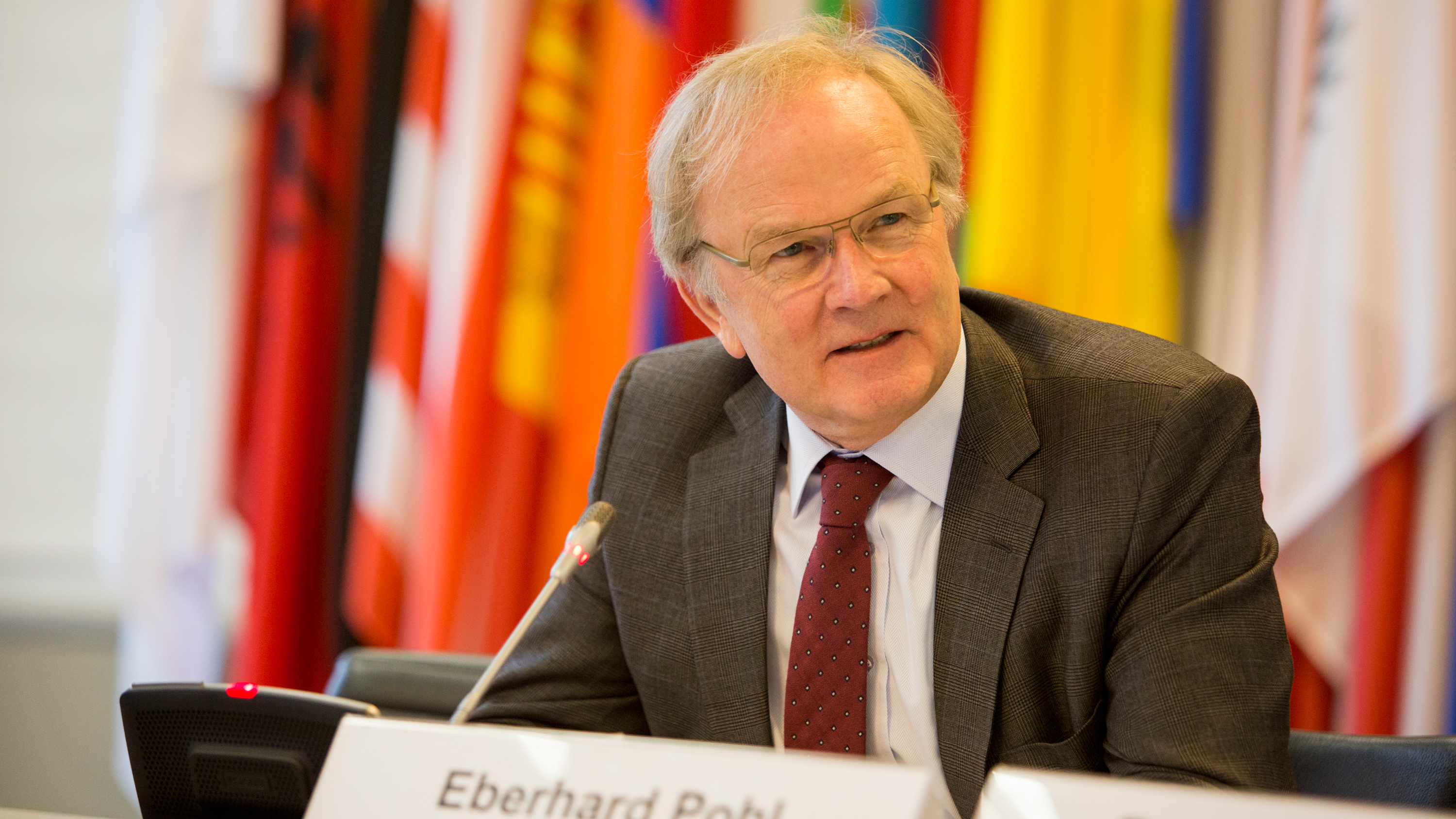 Ambassador Eberhard Pohl, Chairperson of the OSCE Permanent Council, speaking at an ODIHR-organized conference on countering intolerance against Muslims, in Vienna, 19 February 2016