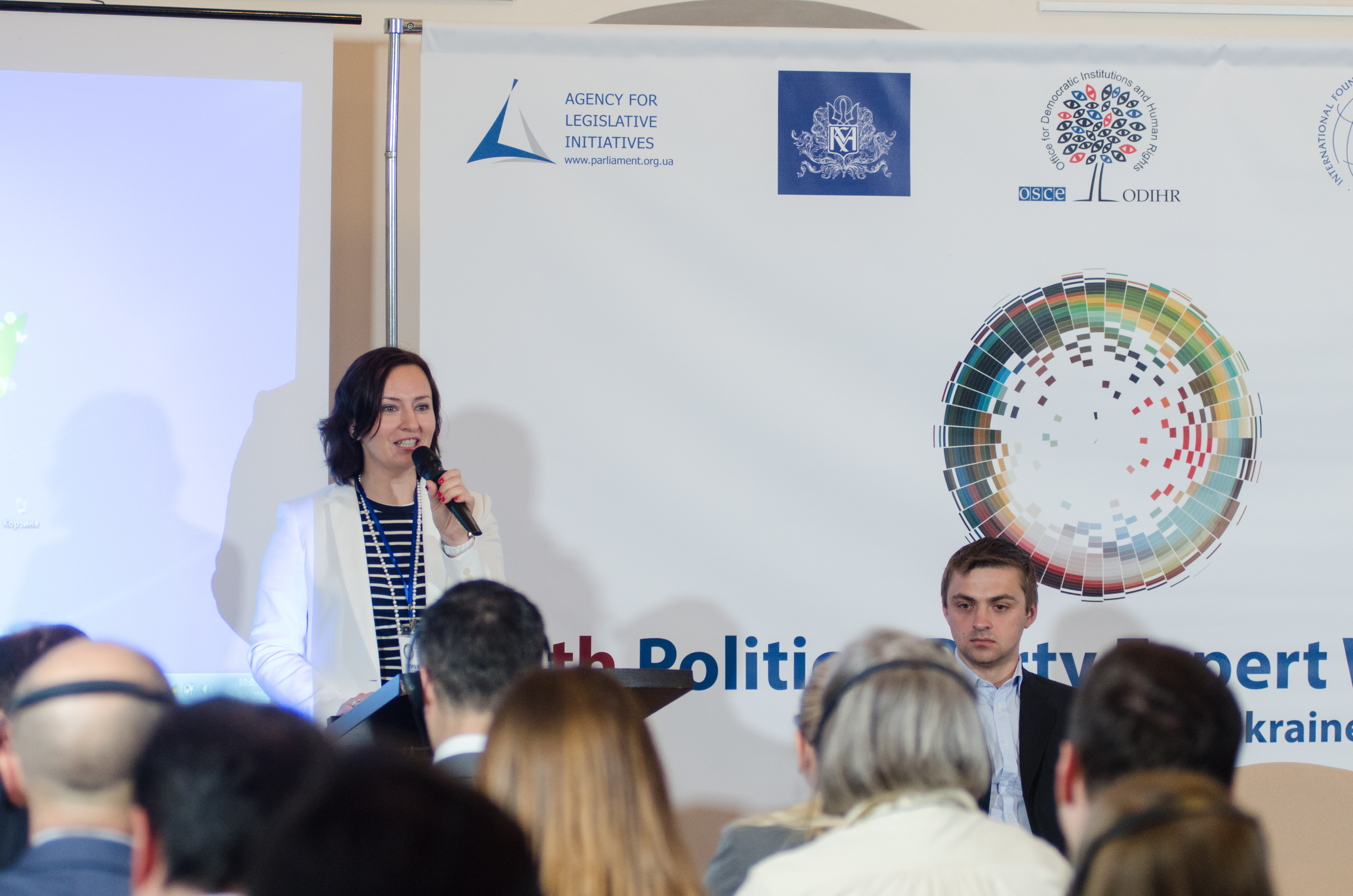 Kateryna Ryabiko, Project Co-Ordinator at ODIHR, speaking at OSCE/ODIHR-organized workshop in Kyiv on political party legislation in Ukraine, 6 July 2016