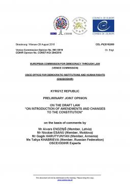 OSCE/ODIHR-Venice Commission Preliminary Joint Opinion on the Draft Law on Introduction of Changes and Amendments to the Constitution of the Kyrgyz Republic
