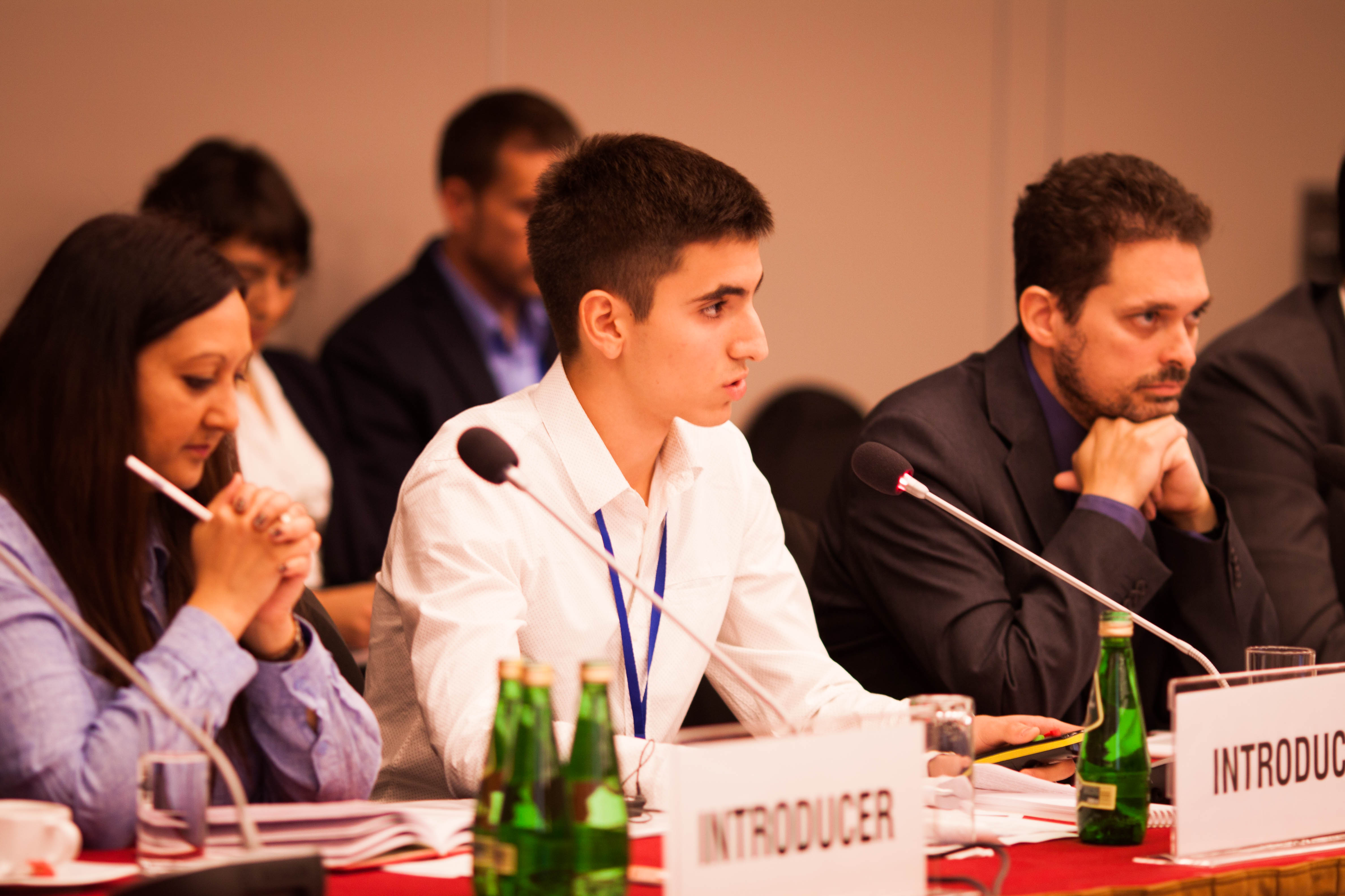 Andrej Vukčević, a 17-year-old student of Podgorica Gymnasium in Montenegro, speaking during a Human Dimension Implementation Meeting (HDIM) session focusing on rights of the child, 29 September 2016, Warsaw